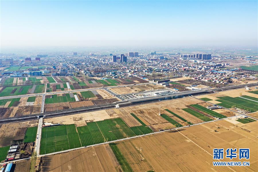 4月1日無人機拍攝的雄安新區(qū)白洋淀站。新華社記者王建華攝