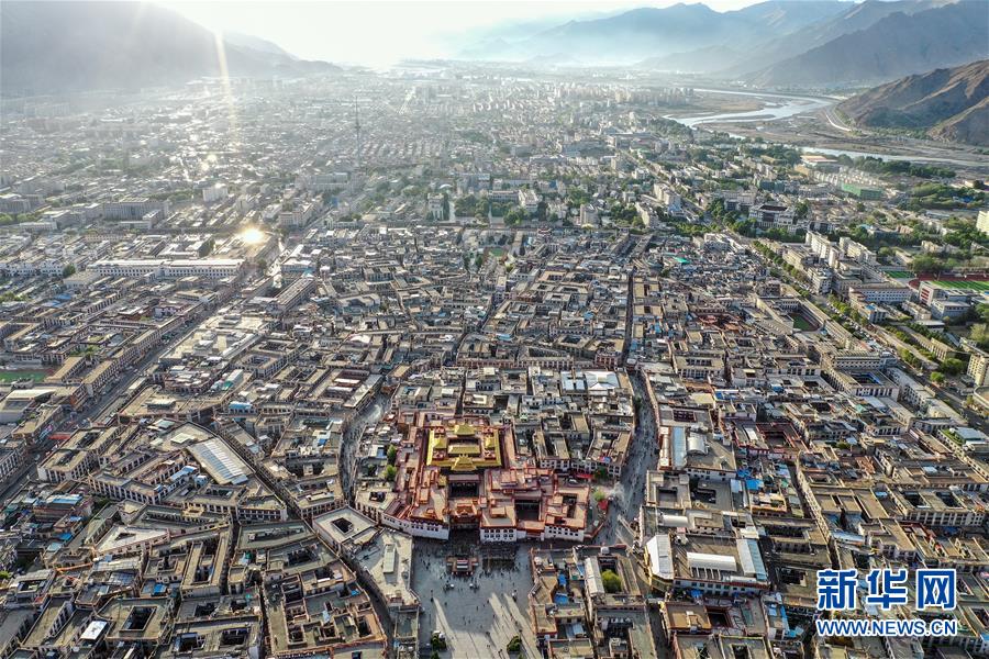 鳥瞰拉薩古城(8月10日無人機(jī)拍攝)。新華社記者 普布扎西 攝