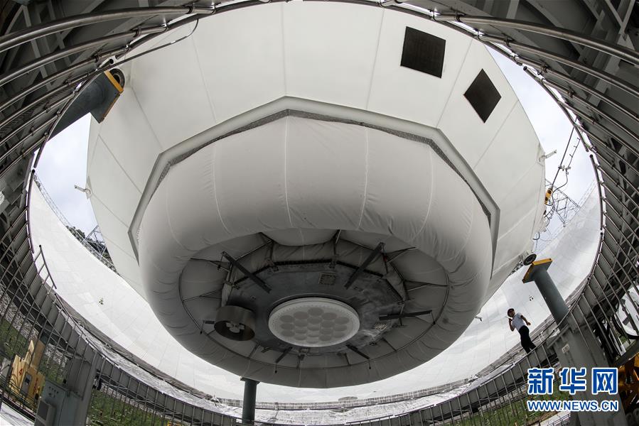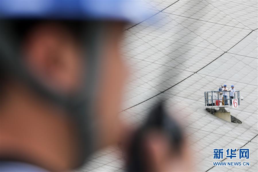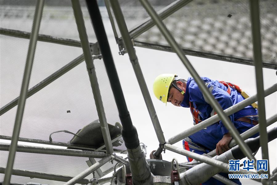 8月28日,工作人員在“中國天眼”內(nèi)進(jìn)行檢修。新華社記者 歐東衢 攝
