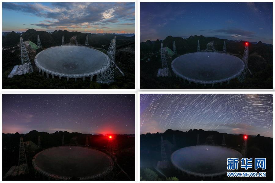 8月28日拍攝的不同光線環(huán)境下的“中國天眼”(拼版照片,檢修期間拍攝)。新華社記者 歐東衢 攝