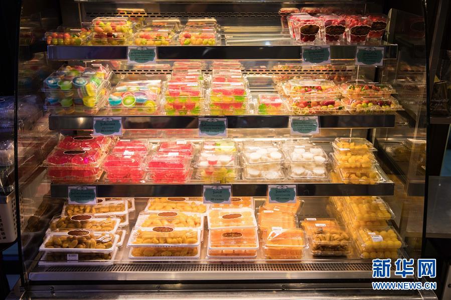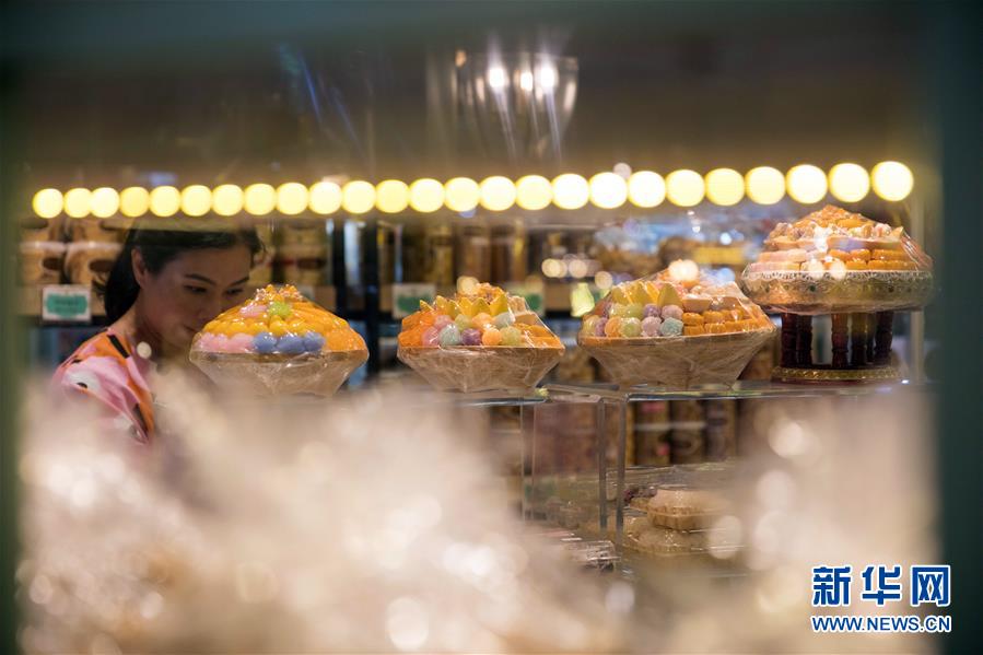 9月1日,店員在泰國曼谷著名的“九姐妹甜點(diǎn)”店整理貨架。