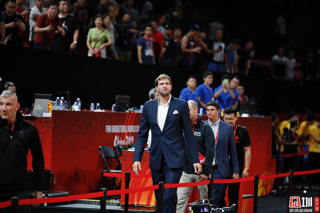 比賽結(jié)束后,德國籍球星諾維斯基來到現(xiàn)場(chǎng)。