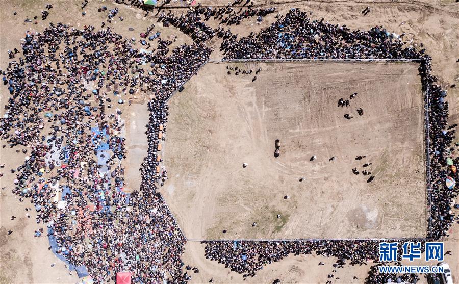 這是斗牛現(xiàn)場(chǎng)(9月9日無(wú)人機(jī)拍攝)。新華社記者 李鑫 攝
