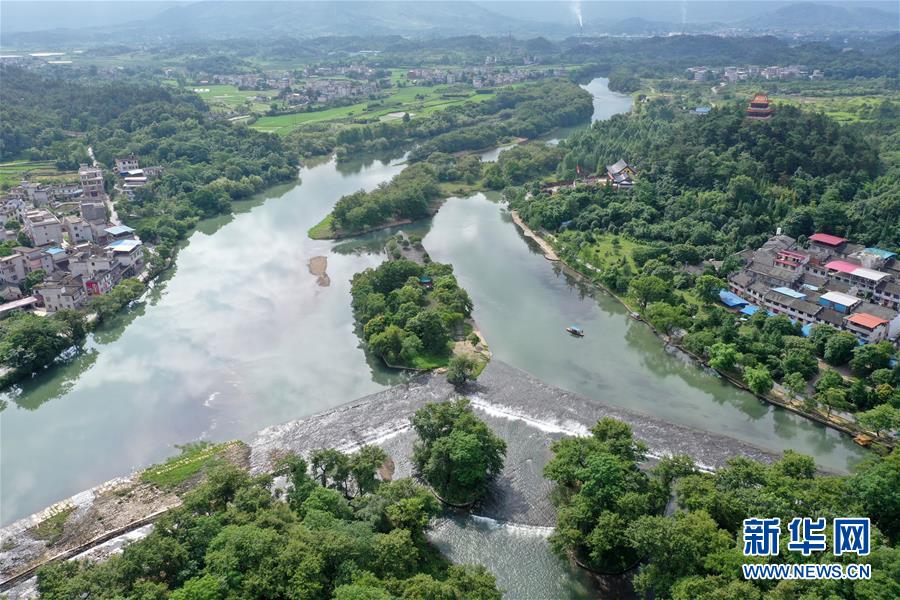 這是6月30日無(wú)人機(jī)拍攝的廣西興安縣靈渠。 位于廣西興安縣的靈渠是世界上保存最完整的古代水利工程之一,至今仍發(fā)揮著農(nóng)田灌溉、排洪泄洪作用。2018年,靈渠入選世界灌溉工程遺產(chǎn)名錄。 新華社記者 周華 攝