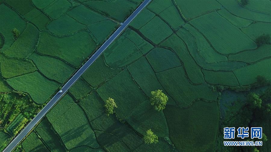 這是8月4日無人機拍攝的安徽黟縣宏村風(fēng)景區(qū)附近的農(nóng)田。新華社記者張端攝
