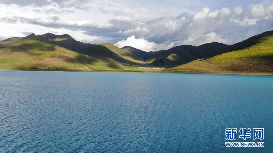8月31日無人機拍攝的羊卓雍錯風光。新華社記者晉美多吉攝