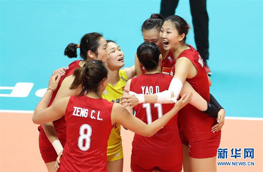 9月22日,中國(guó)隊(duì)球員在比賽中慶祝得分。當(dāng)日,在日本札幌舉行的2019年女排世界杯賽第二階段A組循環(huán)賽比賽中,中國(guó)隊(duì)以3比2戰(zhàn)勝巴西隊(duì)。新華社記者杜瀟逸攝