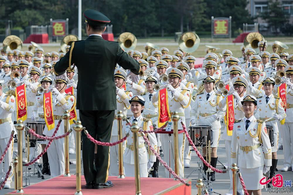 2019年9月17日,閱兵集訓點,聯(lián)合軍樂團訓練中。中國網(wǎng)記者張若夢攝