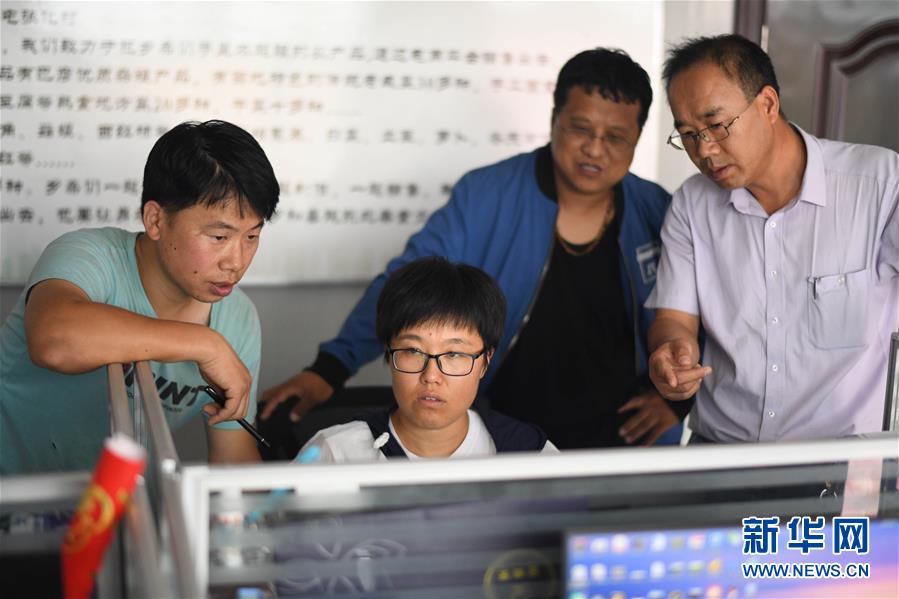 李琛璨(左二)在辦公室與客服一起策劃網(wǎng)店推廣文案(8月30日攝)。 新華社記者 王松 攝