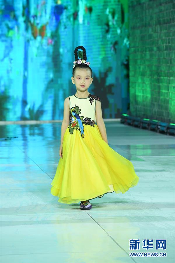 9月25日,小模特在榮昌夏布·張義超非遺時(shí)尚大秀上展示時(shí)裝設(shè)計(jì)師張義超的時(shí)裝作品。 新華社記者 唐奕 攝