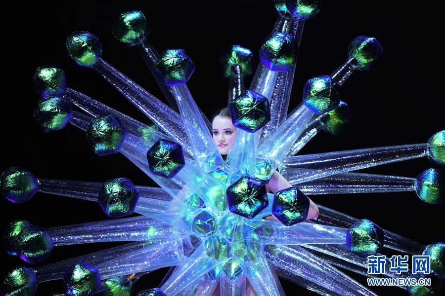 9月26日,在新西蘭首都惠靈頓舉行的世界可穿著藝術大賽年度秀場表演中,模特展示入圍作品。 新華社記者郭磊攝
