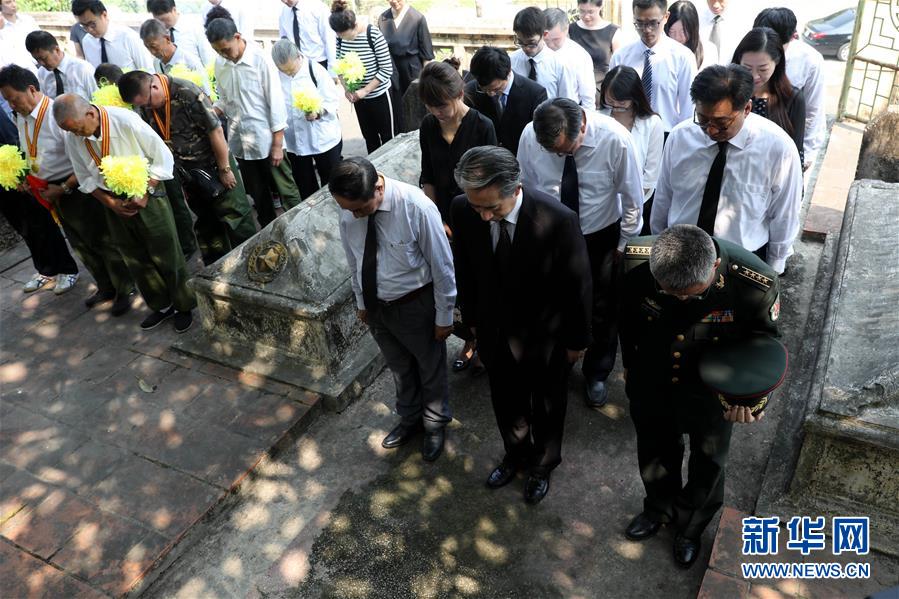 9月30日,在越南北部河南省,人們用鮮花祭奠中國援越烈士。 中國駐越南大使館館員、中國援越老戰(zhàn)士及其親屬、在越中資機(jī)構(gòu)和留學(xué)生代表等30日前往位于越南河南省的金榜烈士陵園,祭奠長眠于此的14名中國援越烈士。越中友協(xié)副主席阮榮光等越方代表也參加了祭掃活動(dòng)。 新華社記者 王迪 攝