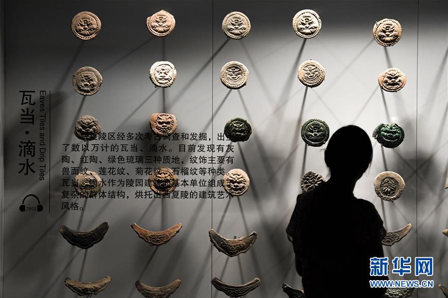 10月2日,游客在寧夏銀川市西夏陵景區(qū)的西夏博物館觀看展出的瓦當、滴水。 新華社記者 馮開華 攝