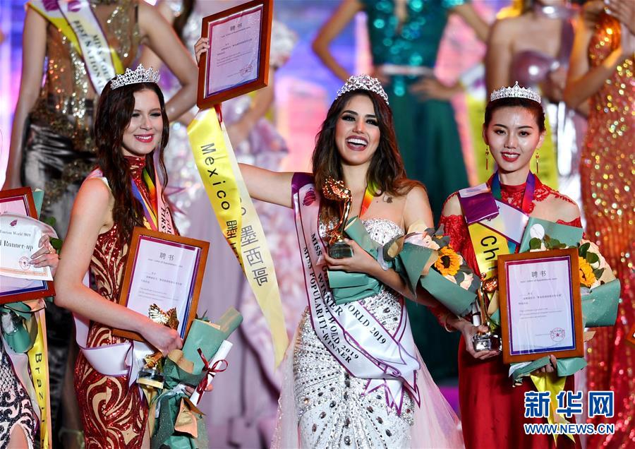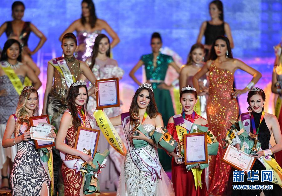 10月6日,選手在頒獎(jiǎng)儀式上。 10月6日晚,2019世界旅游小姐全球總決賽頒獎(jiǎng)盛典在山東青島舉行。來(lái)自67個(gè)國(guó)家和地區(qū)的佳麗在民族服裝、泳裝、晚裝以及才藝展示環(huán)節(jié)各展風(fēng)采,最終來(lái)自墨西哥和加拿大的兩名選手分獲冠亞軍,中國(guó)選手譚若依獲得季軍。 新華社記者 李紫恒 攝