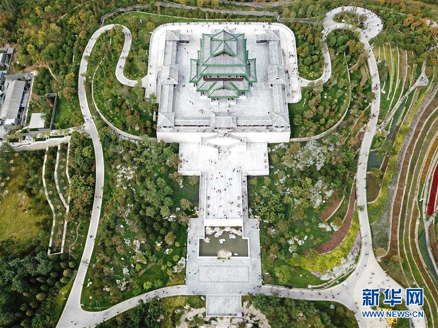 北京世園會(huì)園區(qū)內(nèi)的媯汭劇場(chǎng)(10月7日無(wú)人機(jī)拍攝)。新華社記者才揚(yáng)攝