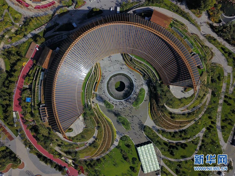 北京世園會(huì)國(guó)際館(10月6日無(wú)人機(jī)拍攝)。新華社記者張晨霖?cái)z