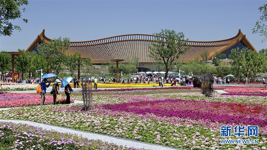 游客在北京世園會(huì)中國(guó)館前游覽(5月23日攝)。新華社記者李欣攝