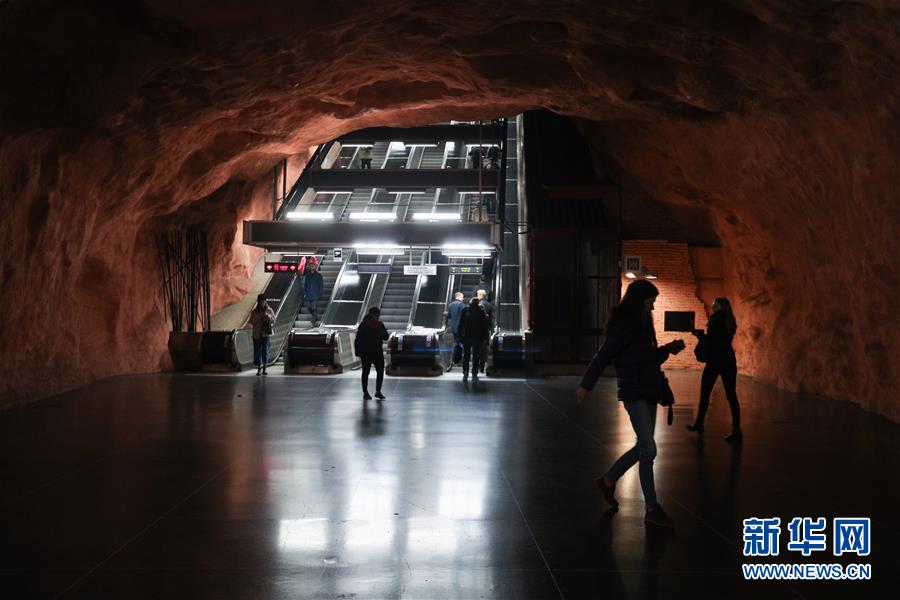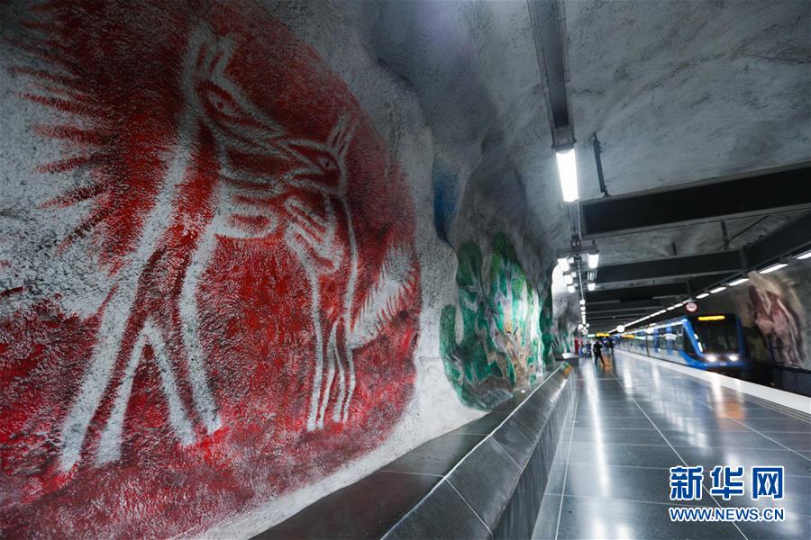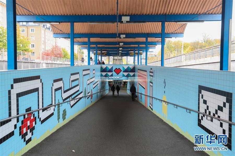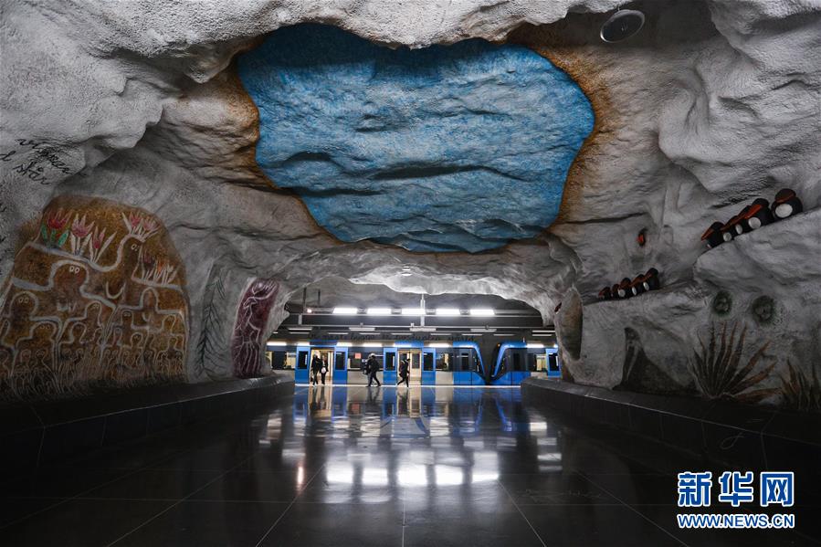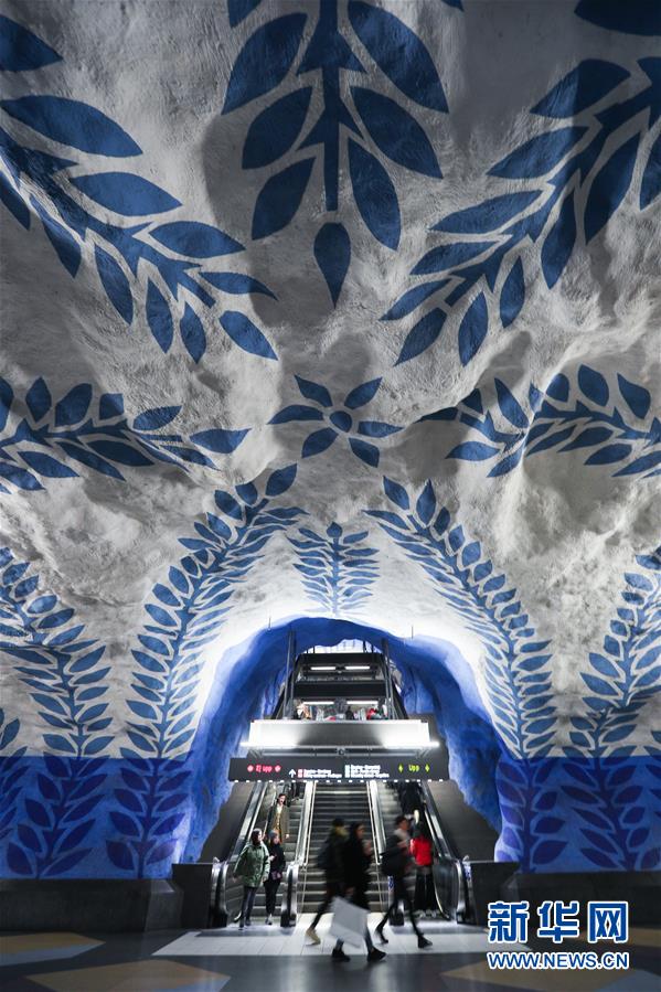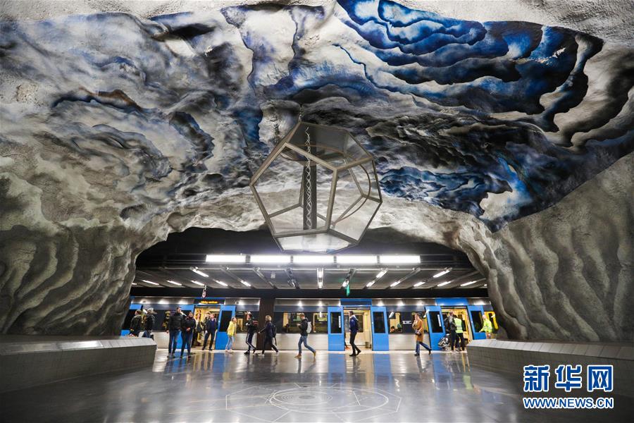 10月8日,在瑞典斯德哥爾摩,乘客在一處地鐵站內(nèi)行走。在瑞典首都斯德哥爾摩,每座地鐵站的站臺(tái)、墻壁及大廳的風(fēng)格設(shè)計(jì)都無一相同,各有特色。藝術(shù)家們運(yùn)用了各類藝術(shù)元素裝點(diǎn)地鐵站,色彩繽紛的視覺效果既突出了每個(gè)站臺(tái)的個(gè)性,也豐富了乘客的旅途體驗(yàn)。走進(jìn)斯德哥爾摩地鐵,仿佛置身于一座“地下藝術(shù)長廊”。新華社記者鄭煥松攝