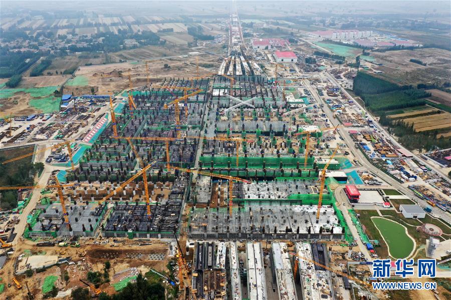 建設(shè)中的雄安站(10月10日無人機拍攝)。
