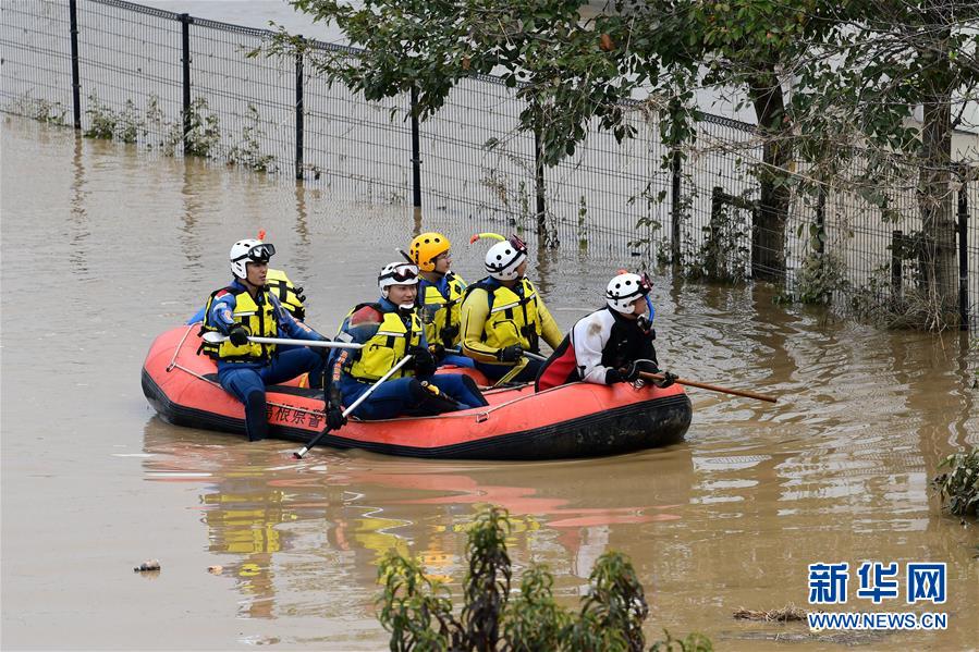 10月14日,在日本長(zhǎng)野市,當(dāng)?shù)鼐仍藛T展開搜救工作。受縱貫東日本強(qiáng)臺(tái)風(fēng)“海貝思”帶來(lái)的強(qiáng)降雨影響,日本多地暴發(fā)洪災(zāi),已造成33人死亡、19人失蹤。據(jù)日本共同社13日統(tǒng)計(jì),“海貝思”過境導(dǎo)致日本多處河流泛濫,目前有21條河流決堤24處。其中,流經(jīng)長(zhǎng)野縣的千曲川決堤,造成長(zhǎng)野市和千曲市大范圍被淹,大片住宅區(qū)被洪水包圍,有的房屋甚至被淹至2層。新華社記者華義攝