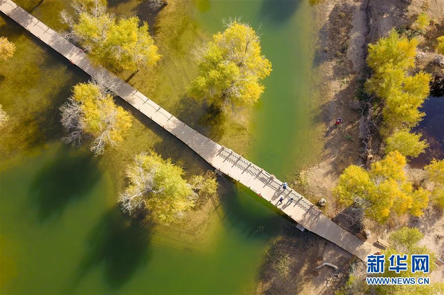 這是在內(nèi)蒙古自治區(qū)額濟納旗拍攝的胡楊林(10月10日攝)。金秋時節(jié),內(nèi)蒙古自治區(qū)額濟納旗胡楊林如同披上金裝,成為大漠中的一抹亮色,吸引眾多中外游客前來觀賞游玩。新華社記者鄒予攝