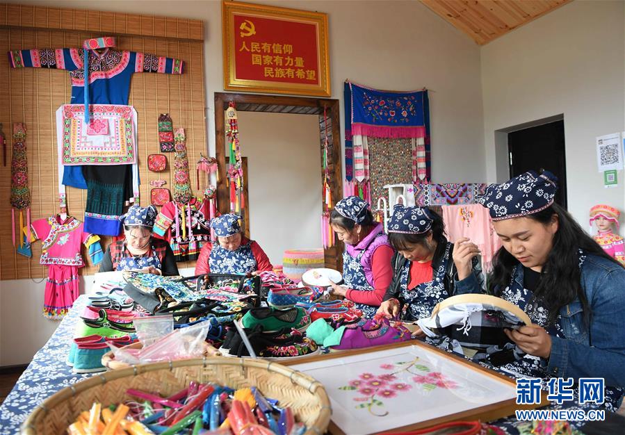 10月16日,團結(jié)村的幾名“巧媳婦”在刺繡。