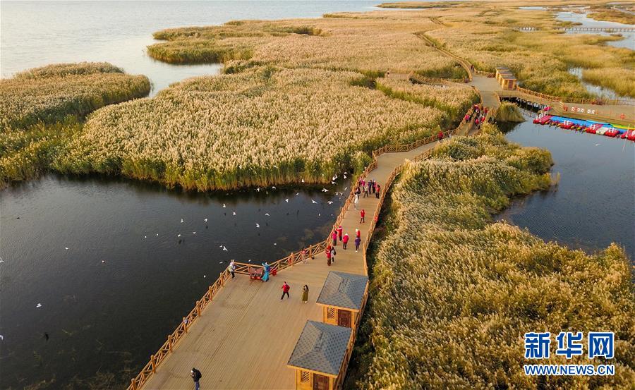 這是10月17日無人機(jī)拍攝的居延海風(fēng)光。新華社記者 彭源 攝