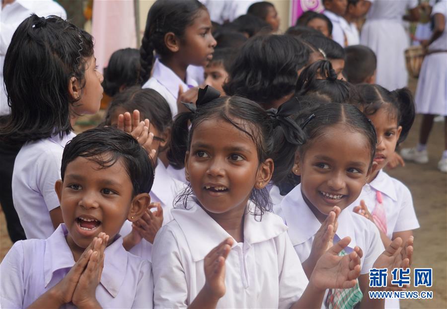 10月18日,在斯里蘭卡漢班托塔地區(qū)的提薩普拉學(xué)校,學(xué)生們在校門口歡迎前來參加教學(xué)樓落成儀式的客人。 18日,斯里蘭卡南方省漢班托塔地區(qū)的提薩普拉學(xué)校洋溢著一派歡天喜地的氣氛,全校師生及家長共同慶祝由中國招商局慈善基金會(huì)援建的兩層新教學(xué)樓正式落成,許多學(xué)生當(dāng)天還領(lǐng)到了中國企業(yè)贊助的嶄新書包。附近地區(qū)的其他學(xué)校校長和村民也紛紛趕來參加儀式。 新華社記者唐璐攝