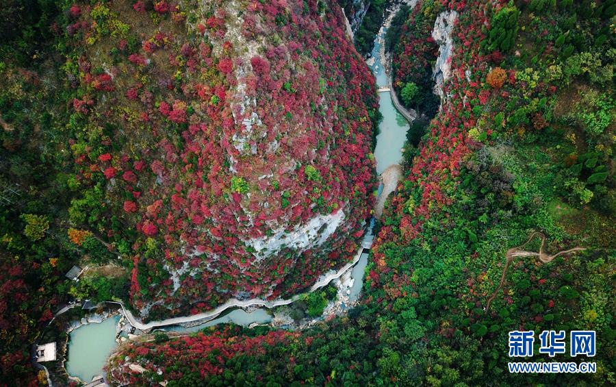 這是10月19日無人機拍攝的河北省涉縣太行紅葉大峽谷景色。新華社記者王曉攝
