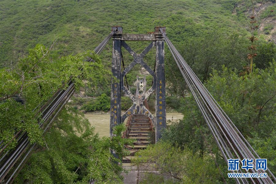 這是大渡河的鋼索汽車(chē)吊橋(6月27日)。 新華社記者 江宏景 攝