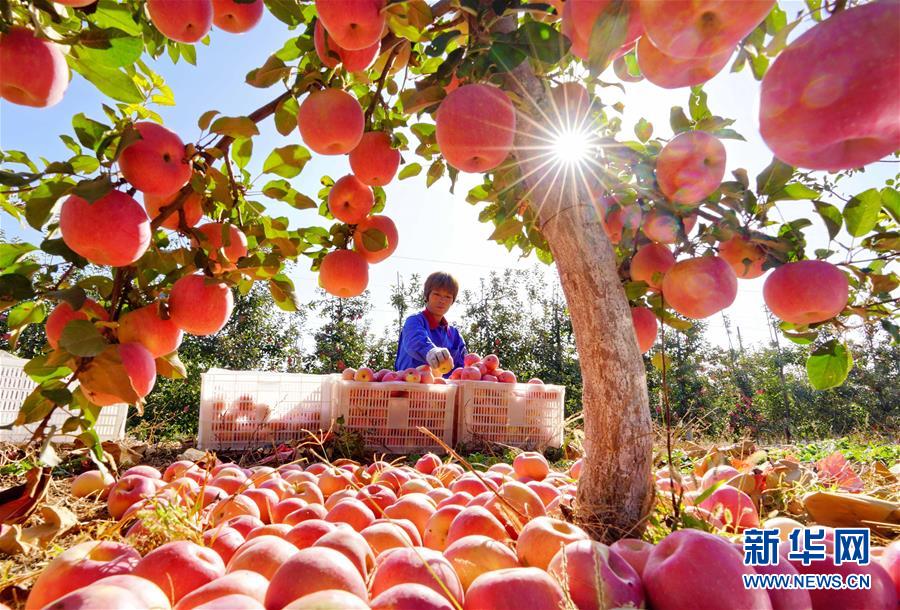 10月25日,灤州市王店子鎮(zhèn)的一位果民在分揀剛采摘的蘋果。新華社記者楊世堯攝