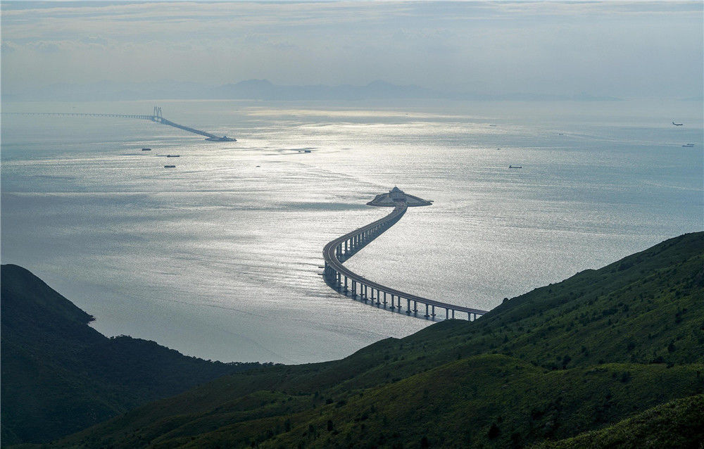 2018年7月17日,香港,從香港大嶼山遠眺港珠澳大橋。港珠澳大橋開通在即,香港跨境巴士業(yè)界2018年9月12日表示,港珠澳大橋?qū)榛浉郯拇鬄硡^(qū)創(chuàng)造大量跨境巴士的旅客需求,整個行業(yè)將迎來“飛躍式發(fā)展”。張煒(香港分社)/中新社/視覺中國