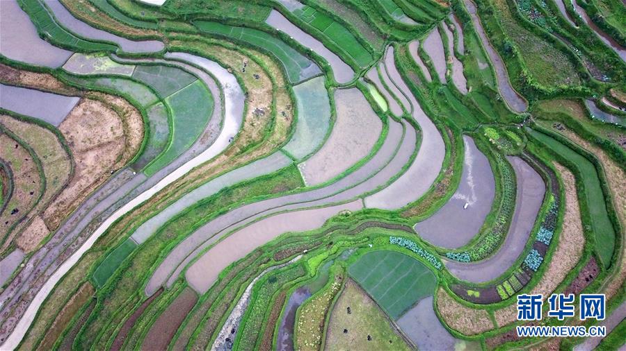 這是5月18日無人機(jī)拍攝的貴州省丹寨縣龍泉鎮(zhèn)高要梯田景色。初夏時(shí)節(jié),位于貴州省丹寨縣龍泉鎮(zhèn)的高要梯田景色優(yōu)美。新華社記者楊文斌攝