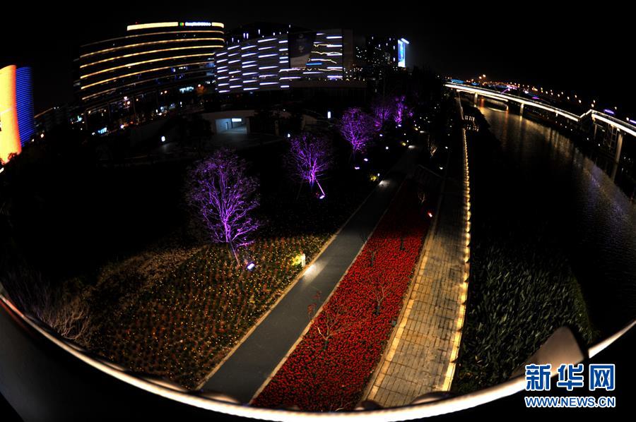 10月25日晚在國家會展中心(上海)周邊地區(qū)拍攝的夜景。新華社記者張建松攝