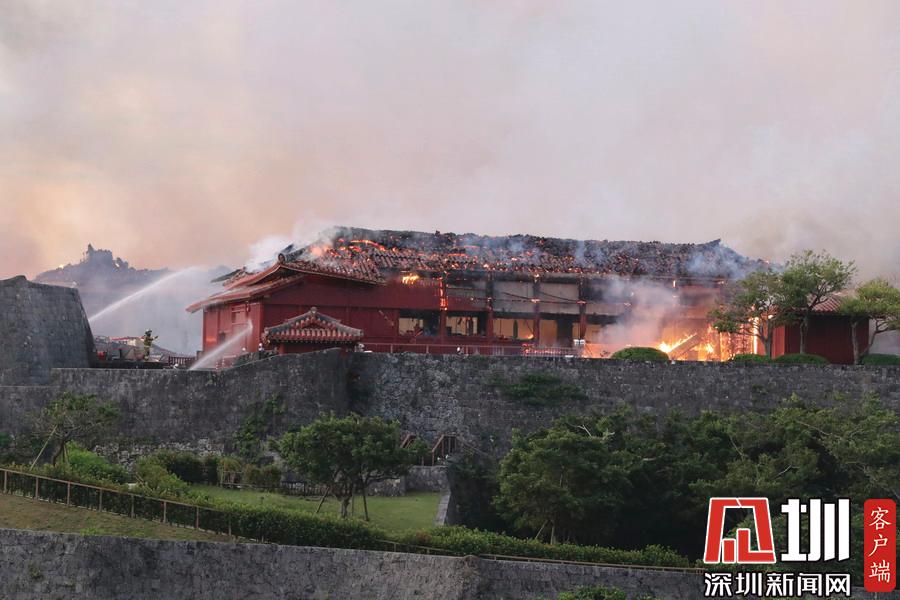 日本沖繩縣那霸市的琉球王國都城遺址首里城火災(zāi)現(xiàn)場。