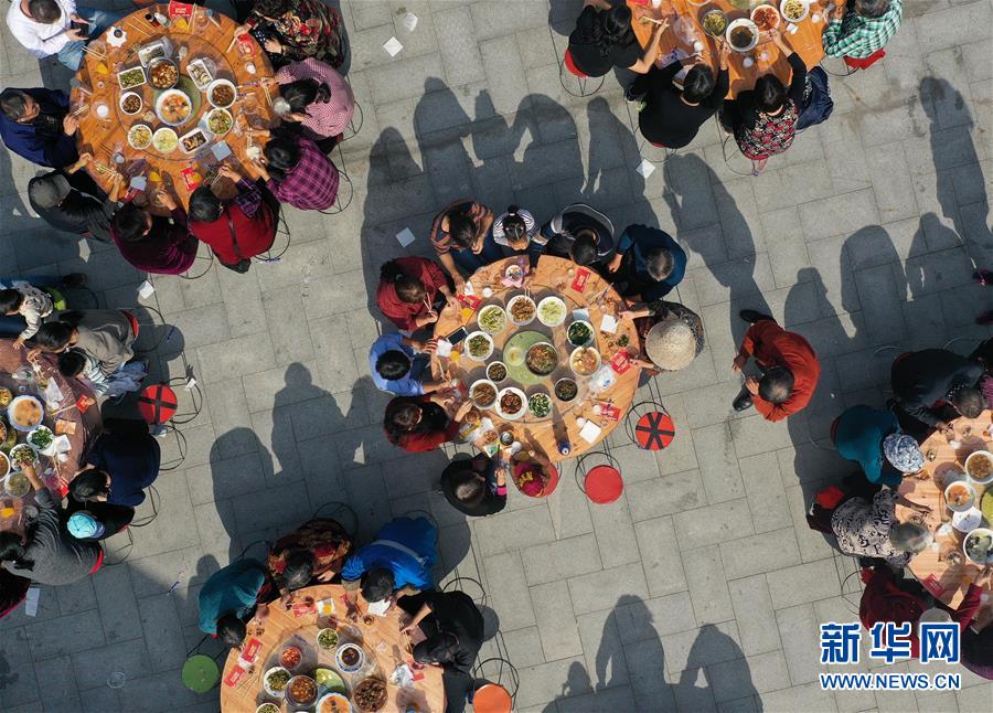 11月2日,南京仙林街道仙林新村社區(qū)居民參加千家宴(無人機拍攝)。 新華社記者 季春鵬 攝