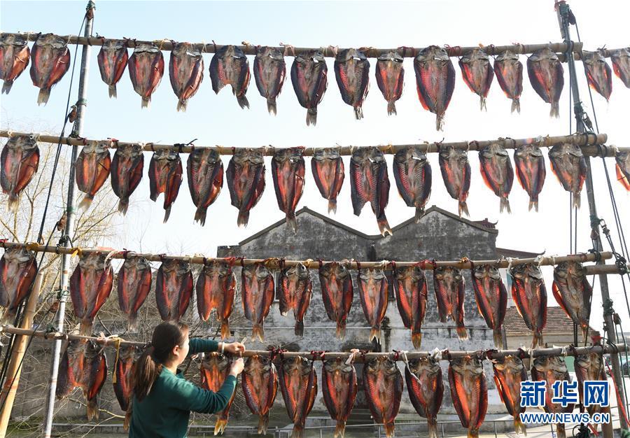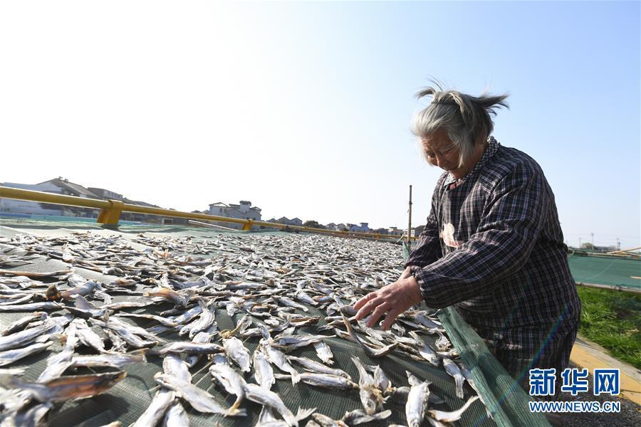 3月12日,浙江省湖州市吳興高新區(qū)幻溇村村民在曬魚(yú)干。近日,太湖南岸湖州地區(qū)久雨初晴,漁民忙著制作、晾曬魚(yú)干。新華社記者翁忻旸攝