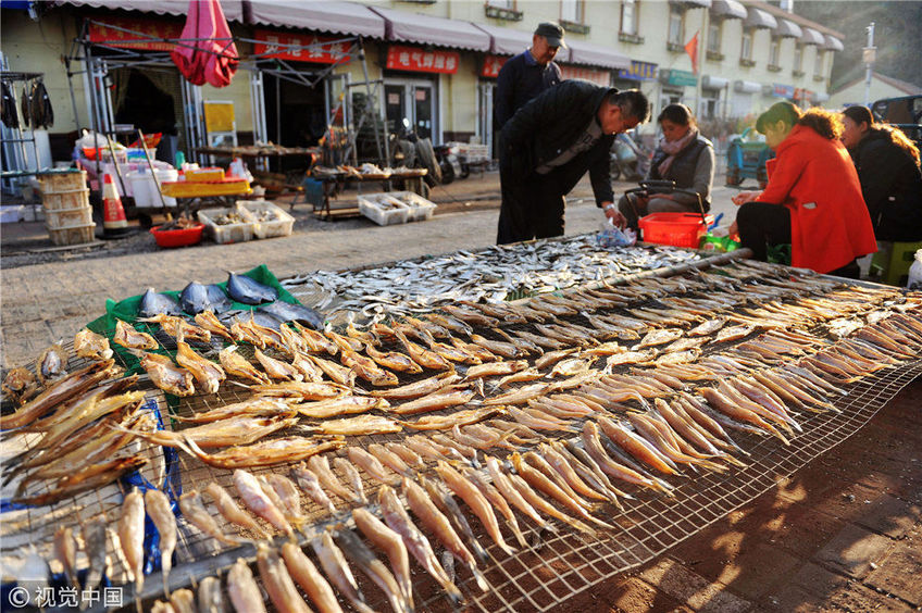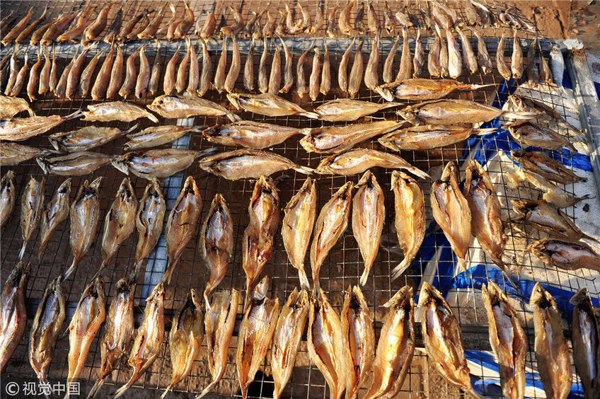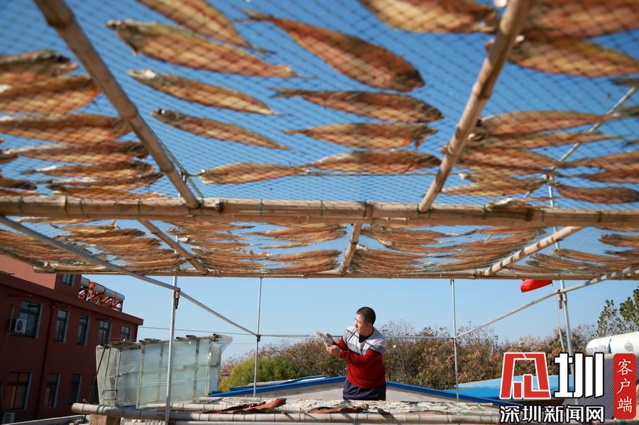 在暖陽(yáng)之下,成片晾曬的海魚(yú)干成為了漁家一道獨(dú)具特色的民俗景象。