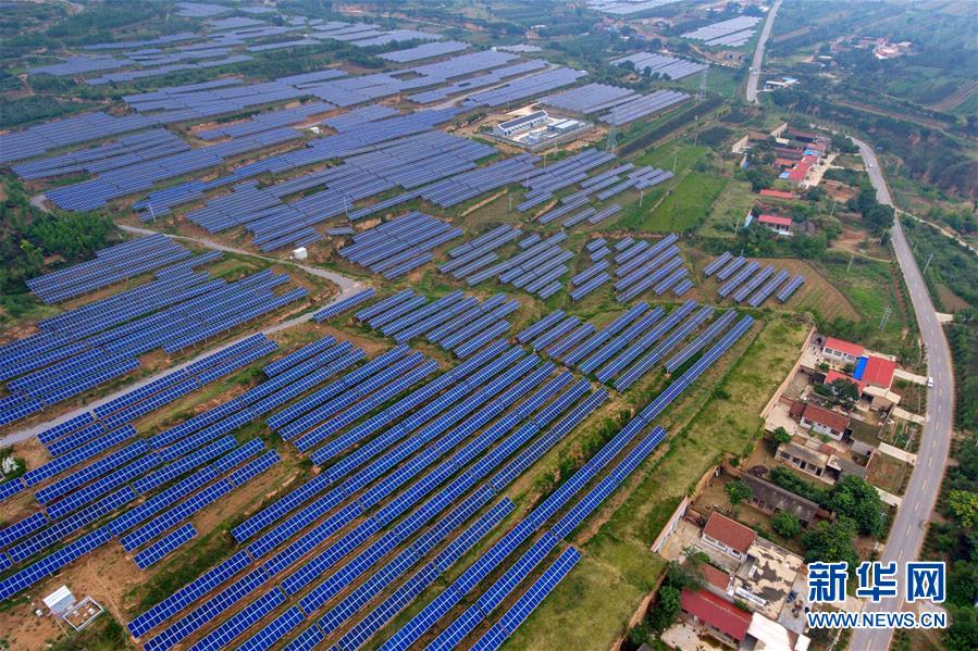 這是7月5日拍攝的山西省運(yùn)城市芮城縣光伏領(lǐng)跑技術(shù)基地(無(wú)人機(jī)拍攝)。