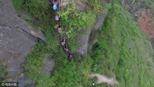 4月27日,阿土勒爾村的一個村民摔下了懸崖,村子里的大人對在山下讀書的孩子更加擔心起來。阿土勒爾村有15個6至15歲的孩子在山腳下的勒爾小學上學,平時住校,每月月中和月底的周末才回家。每次上下山,家長們都會輪流接送。 圖片來源:視覺中國