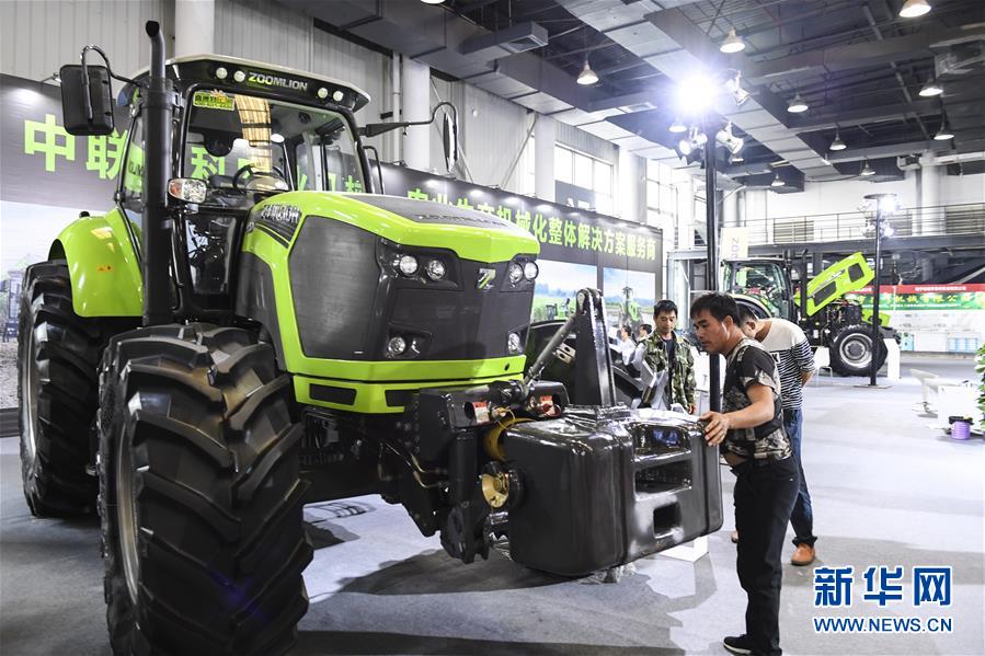 11月16日,參觀者在展會(huì)現(xiàn)場(chǎng)參觀甘蔗收割機(jī)械設(shè)備。新華社記者曹祎銘攝