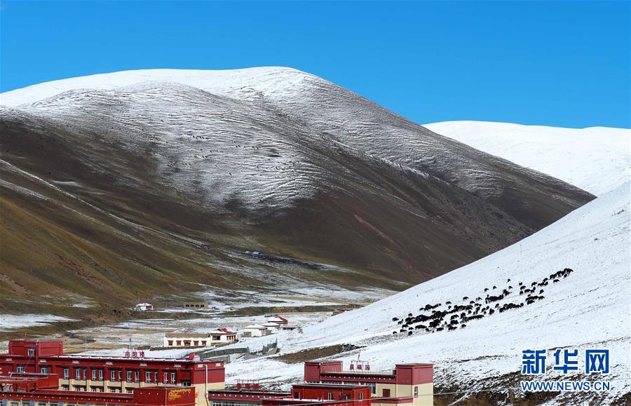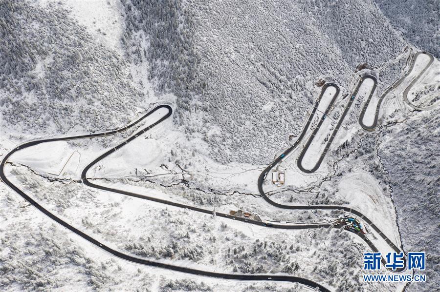 這是318國道剪子彎山段,大雪過后銀裝素裹(10月17日無人機拍攝)。新華社記者江宏景攝