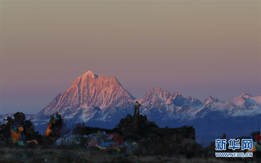 這是在川藏公路四川高爾寺山埡口拍攝的夕陽下的雅拉雪山(2018年11月9日攝)。新華社記者江宏景攝