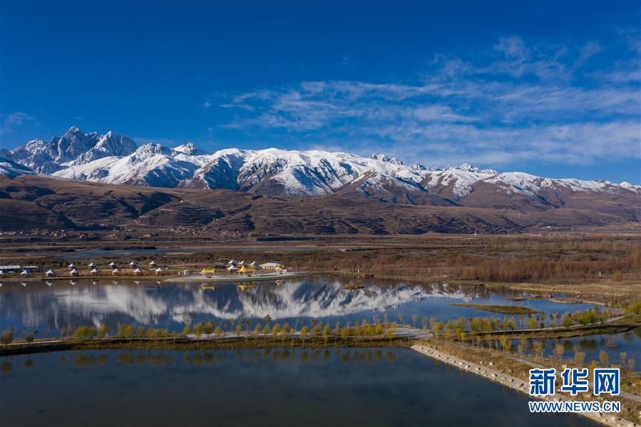 317國道邊的四川甘孜縣雅礱江濕地公園(11月3日無人機拍攝)。新華社記者江宏景攝