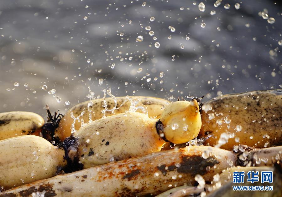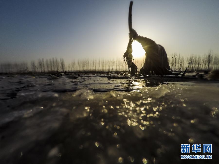 寒冬時節(jié),白洋淀里依然活躍著不少挖藕人,他們身穿橡膠工作服,在冰冷的水中辛勤工作。
