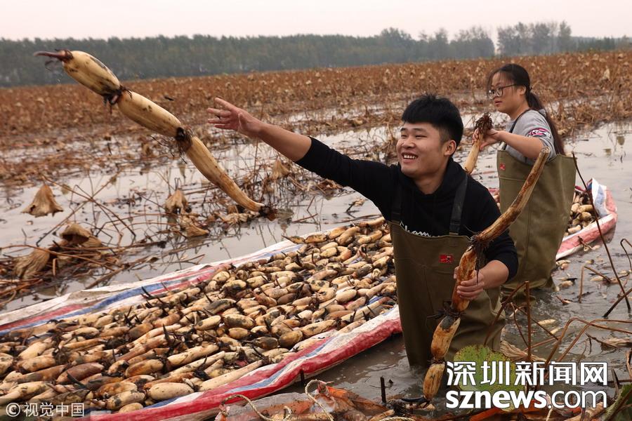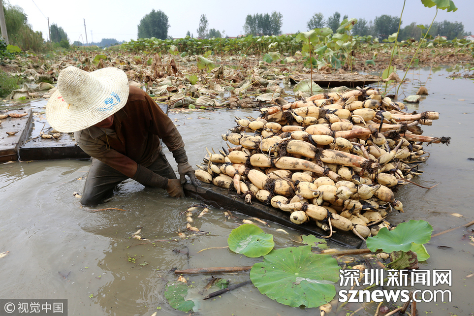 藕農(nóng)泥中“掘金”初秋時節(jié)采藕忙