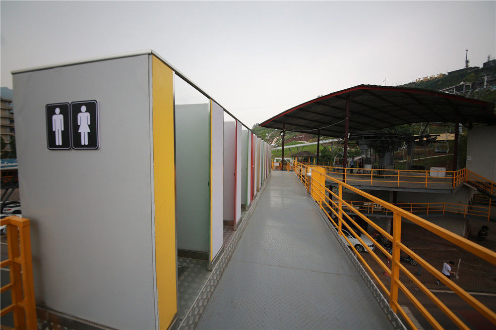 2018年5月5日,重慶涪陵紅酒小鎮(zhèn)一過街天橋上修建了一排“無性別公廁”,過往民眾稱這完全像是“空中廁所”。據(jù)悉,修建露天公廁主要是緩解該景區(qū)游客入廁難的問題。蘇志剛/視覺中國