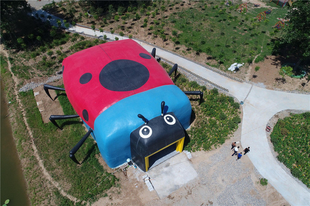 2017年7月23日,湖北省襄陽市,在一處鄉(xiāng)村農(nóng)家樂景點(diǎn)內(nèi),一座七星瓢蟲造型的公廁非常吸引眼球。供圖/視覺中國(guó)