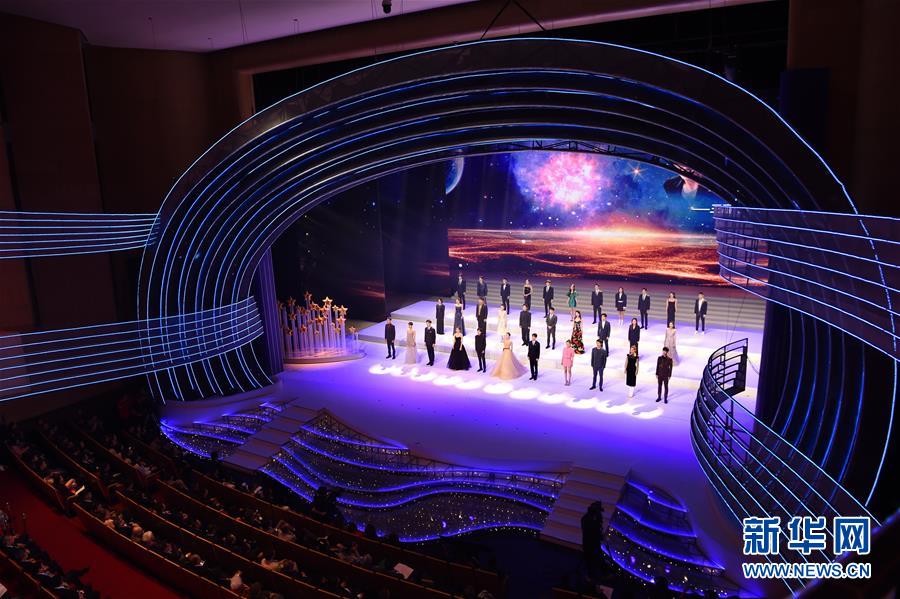 11月19日,演員代表在第28屆中國(guó)金雞百花電影節(jié)開(kāi)幕式上演唱歌曲《星辰大?!?。新華社記者姜克紅攝