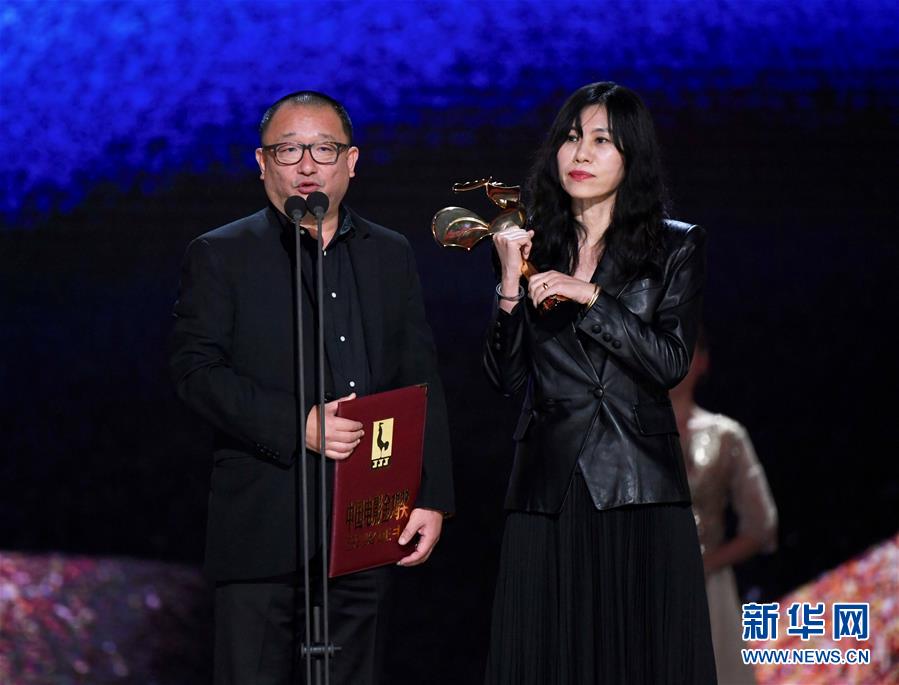 11月23日,電影《地久天長(zhǎng)》獲得最佳編劇獎(jiǎng),導(dǎo)演兼編劇王小帥(左)、編劇阿美在頒獎(jiǎng)儀式上。當(dāng)日,第32屆中國(guó)電影金雞獎(jiǎng)?lì)C獎(jiǎng)典禮在福建廈門(mén)舉行。新華社記者姜克紅攝
